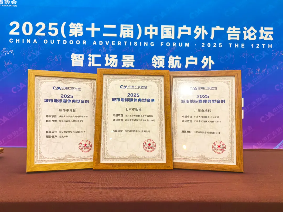 會議期間,兆訊傳媒憑借行業(yè)領(lǐng)先的媒體資源優(yōu)勢,榮獲“中國戶外廣告之最:全國高鐵站核心候車區(qū)數(shù)字媒體數(shù)量最多” “城市地標(biāo)廣告媒體(廣州、成都、北京三地)”“戶外廣告交通場景類優(yōu)質(zhì)媒體”“戶外廣告商業(yè)場景類優(yōu)質(zhì)媒體”四類獎項認(rèn)證。同時憑借前沿數(shù)字創(chuàng)意制作能力打造的全新裸眼3D大片《繁花映象》榮獲“城市戶外裸眼3D創(chuàng)意作品”之稱。