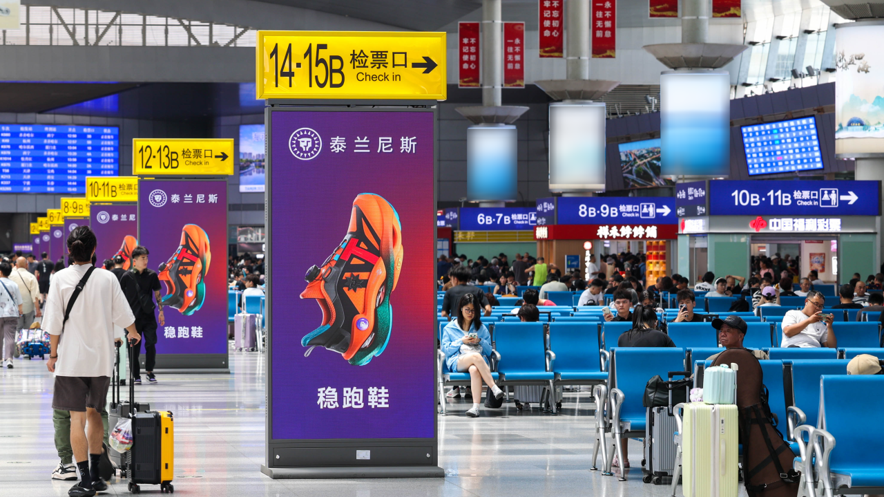 兆訊鎖定客流最為密集的核心候車區,科學布局旅客乘車必經之路,利用高清矩陣式媒體形成統御全場的核心視覺,為泰蘭尼斯構建品牌專屬沉浸空間,促進泰蘭尼斯與消費者之間高頻次、近距離的互動,筑牢“運動防護跑鞋開創者”的品牌認知,助推泰蘭尼斯完成從“中國制造”到“中國品牌”價值躍升。